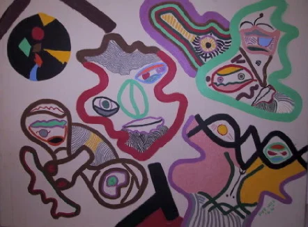 IMAGE: One of Bix’s friends—at least in real life—was Pee Wee Russell. And that’s one of Pee Wee’s paintings above. Pluriactivity in action: When he wasn’t barking through his clarinet, he was “producing a series of seemingly abstract canvases that were actually accurate chartings of his inner workings.”